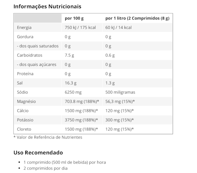 | Cloreto | 1500mg (188%)* | 120 mg (15%)* |