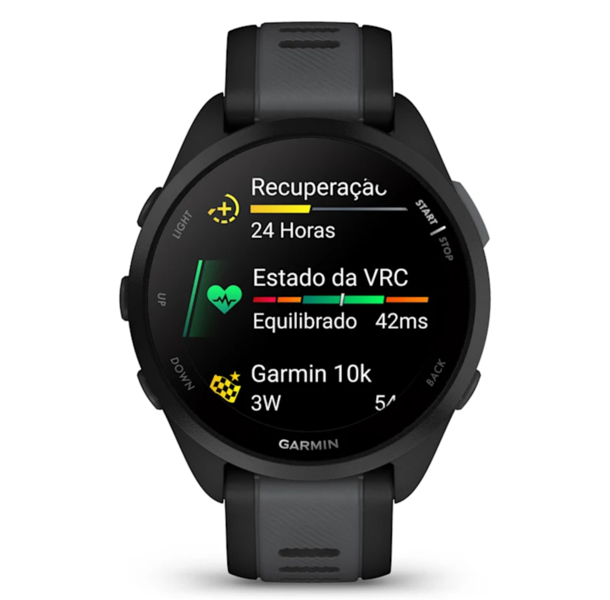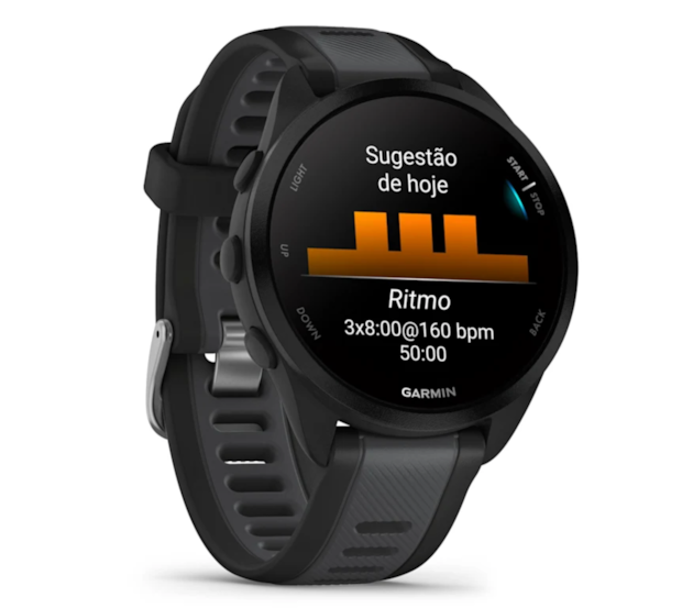 O Garmin Forerunner 165 é fabricado por e para corredores. E não é apenas uma forma de falar. Não só regista dados essenciais como a distância ou as calorias, como também adapta as sessões de treino diárias e oferece planos personalizados. Além disso, com Training Effect, poderá avaliar o impacto de cada atividade e descobrir dicas para melhorar a forma física, tirar o máximo partido dos seus treinos e alcançar todos os seus objetivos. É literalmente como ter um treinador pessoal avançado no pulso.
