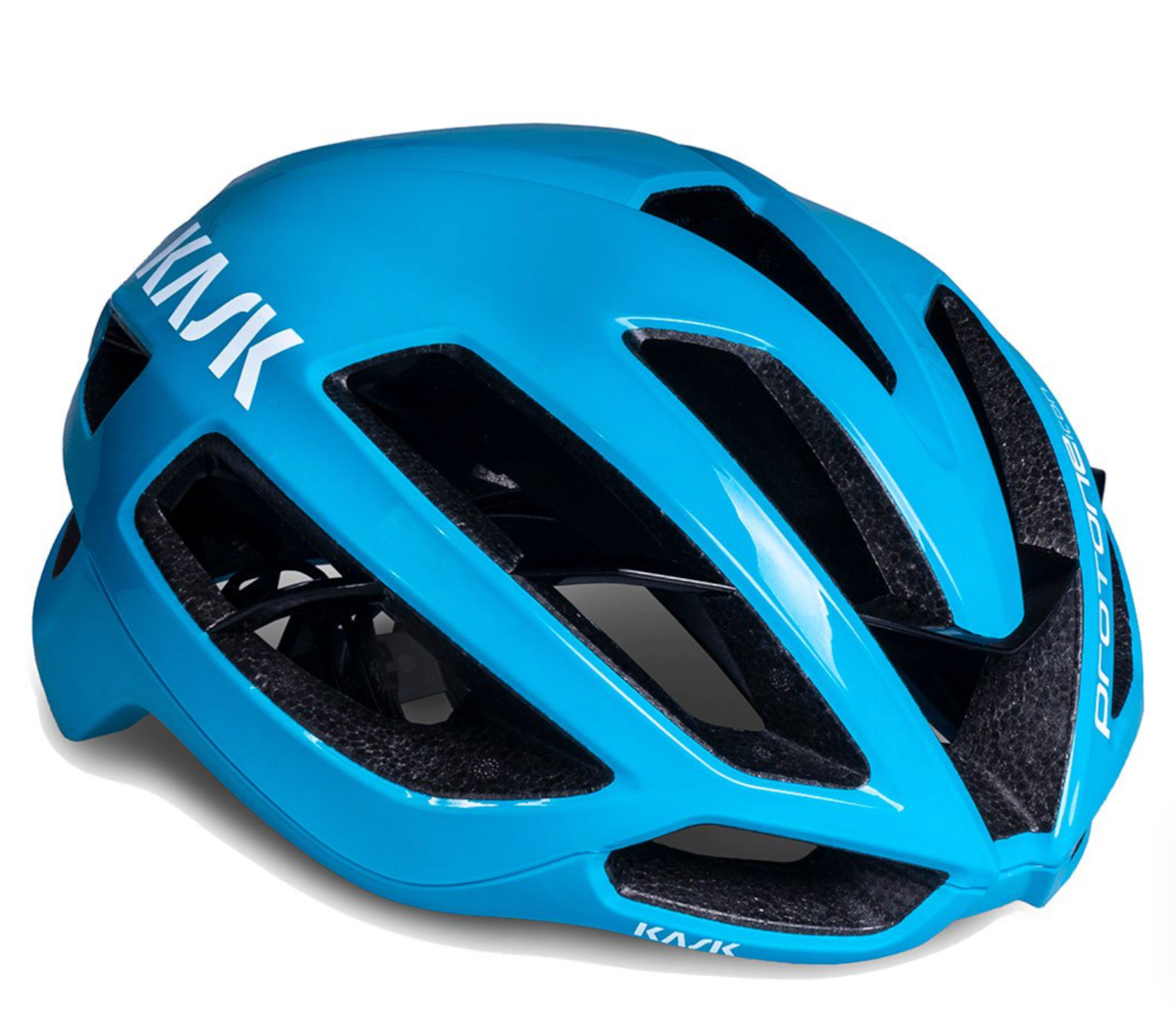 Capacete Kask Protone de gama alta e muito leve desenvolvido no túnel de vento com uma grande capacidade de dispersão do calor. O capacete foi fabricado utilizando a tecnologia MIT Multi In-Moulding que garante uma maior segurança e uma proteção completa graças à camada de policarbonato que cobre a parte superior, o perímetro inferior e a parte posterior. A cobertura total de EPS poliestireno expandido assegura a distribuição da força do impacto em toda a superfície, mantendo a união com a parte exterior em caso de impacto e permitindo uma maior durabilidade do capacete. Este sistema de fabrico permite que o Protone ofereça uma maior capacidade de absorção e um menor risco de rutura em caso de impacto.