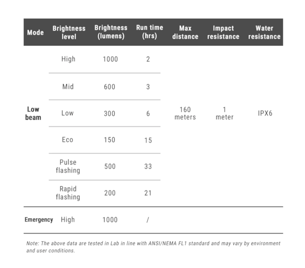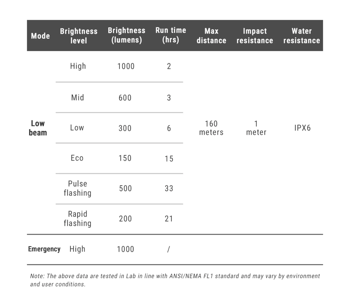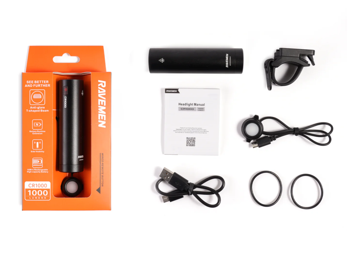 Com uma bateria grande de 4000mAh e um máximo de 1000 lúmens, o CR1000 foi concebido para os ciclistas de estrada que pedalam à noite a alta velocidade e longa distância.
