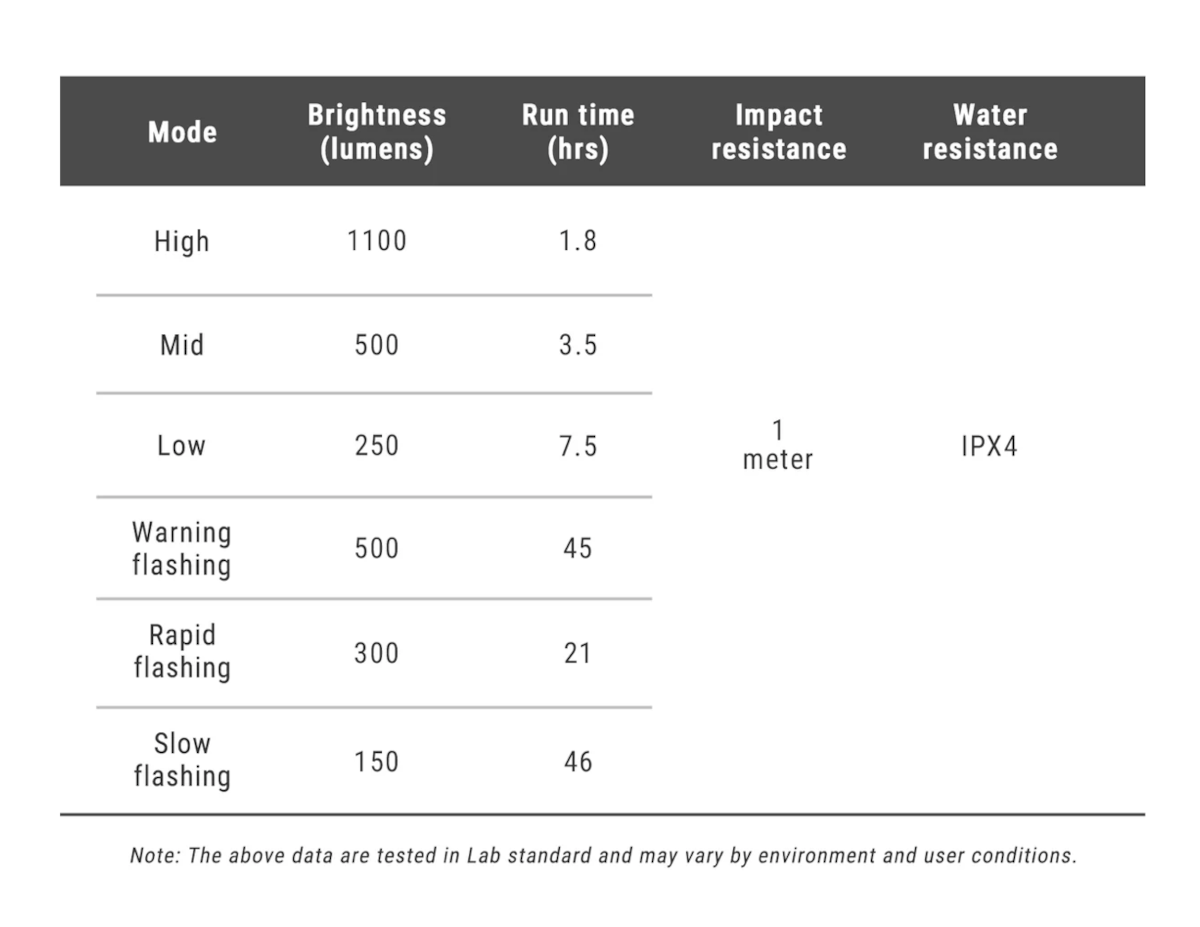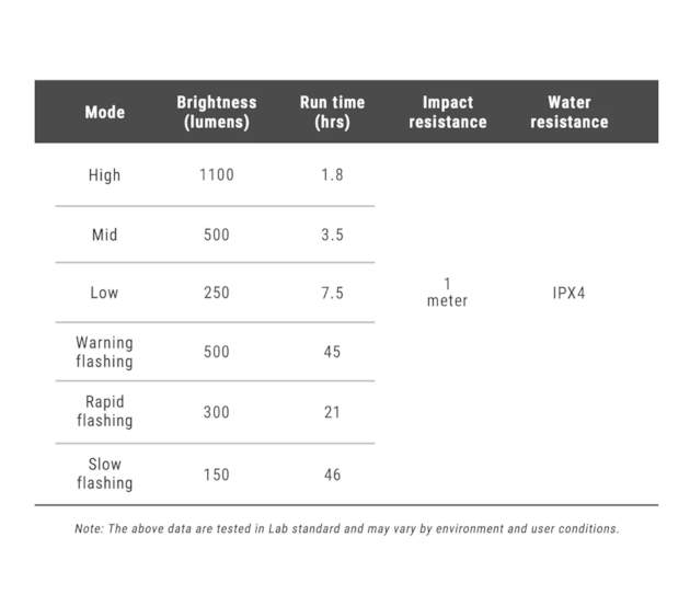 Com uma potente saída de 1100 lúmens para pedaladas noturnas e múltiplos modos de flash diurno, a FR1100 mantém-no visível em todas as condições.