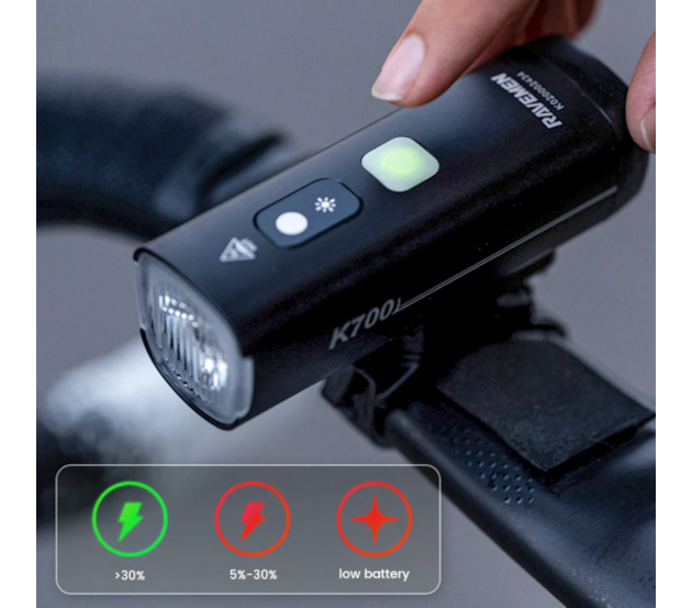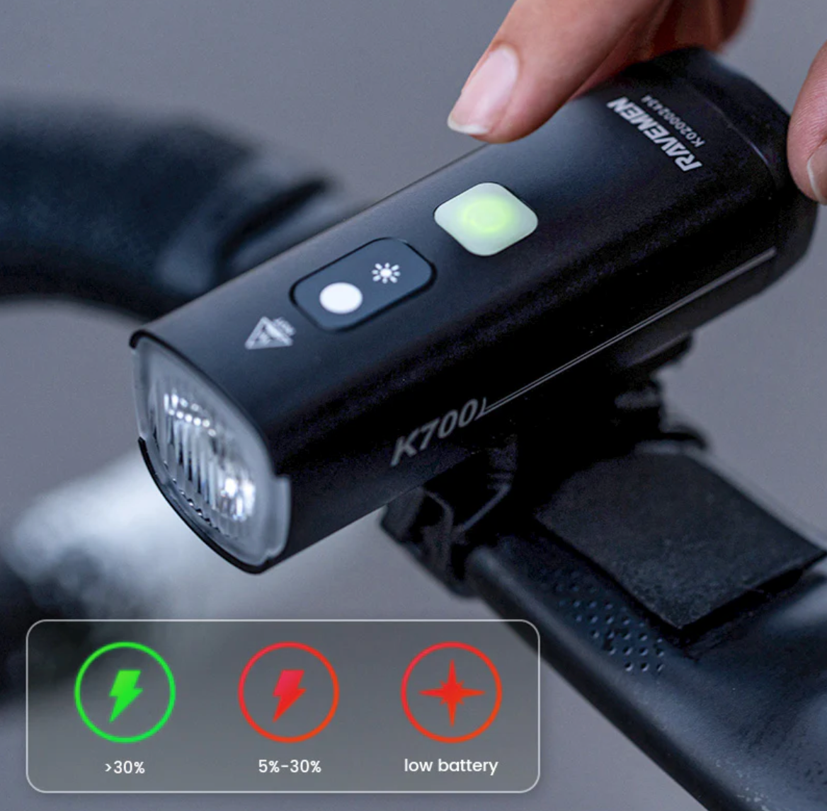 Experimente a liberdade e a segurança do K700, um farol sensível à luz que transforma a sua pedalada. Adaptando-se perfeitamente às mudanças na luz ambiente, alterna os modos automaticamente, permitindo-lhe concentrar-se na viagem à sua frente. O refletor uniforme oferece uma visão ampla e cristalina, garantindo que vê e é visto de todos os ângulos. Eleve a sua experiência de ciclismo com o K700, onde a inovação se encontra com um desempenho de iluminação incrível.