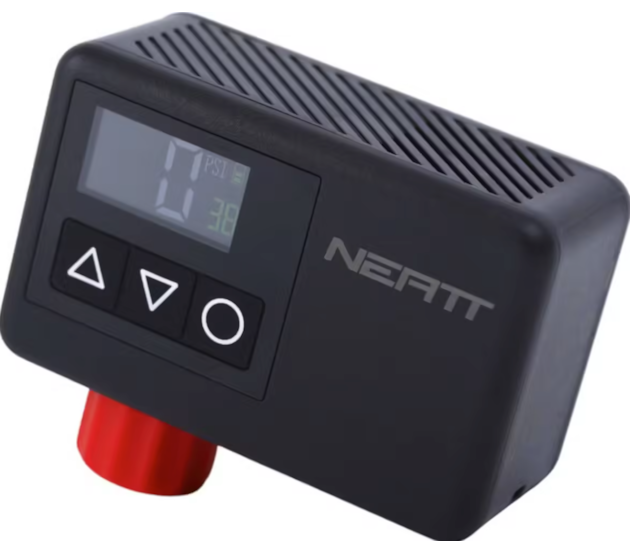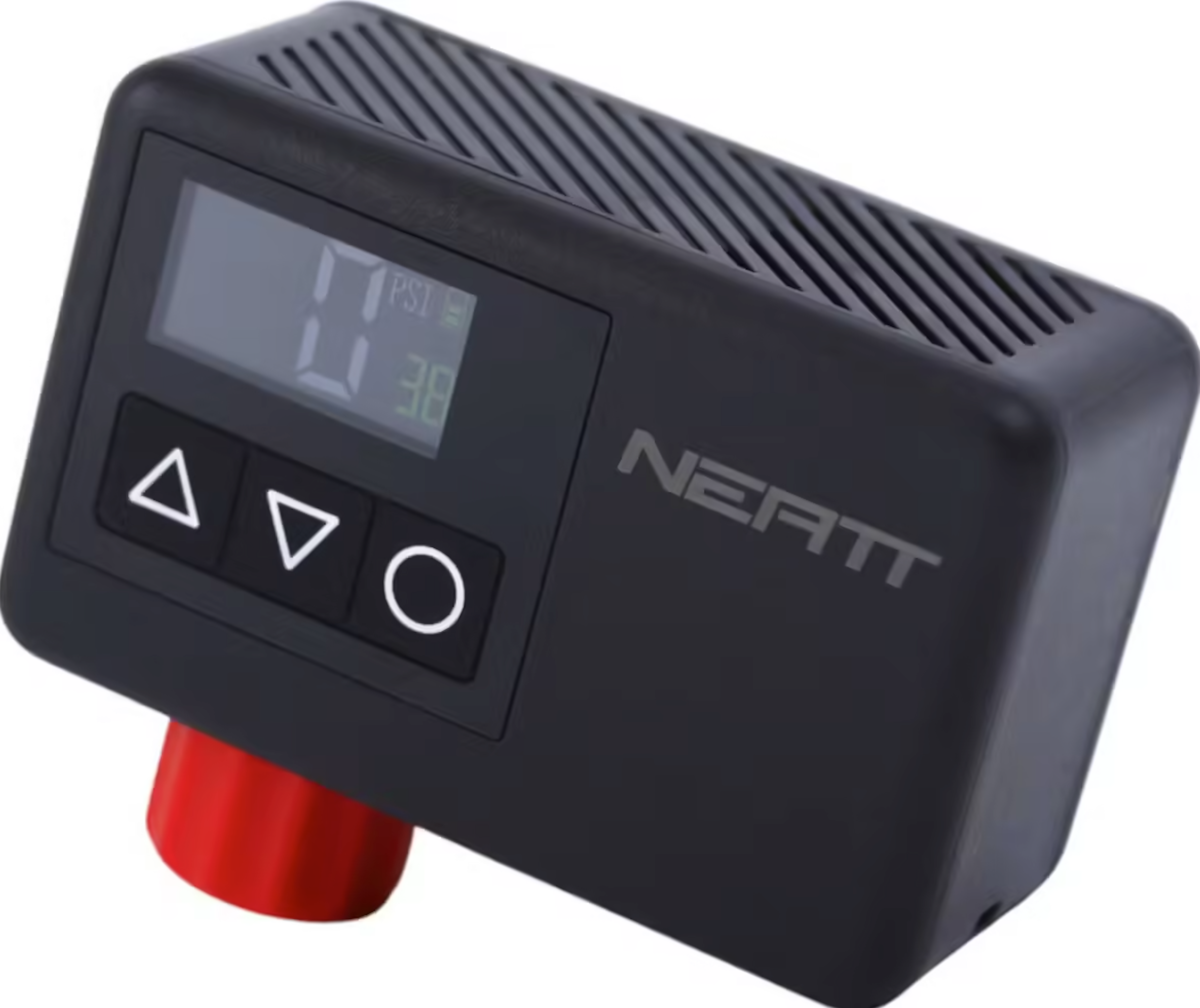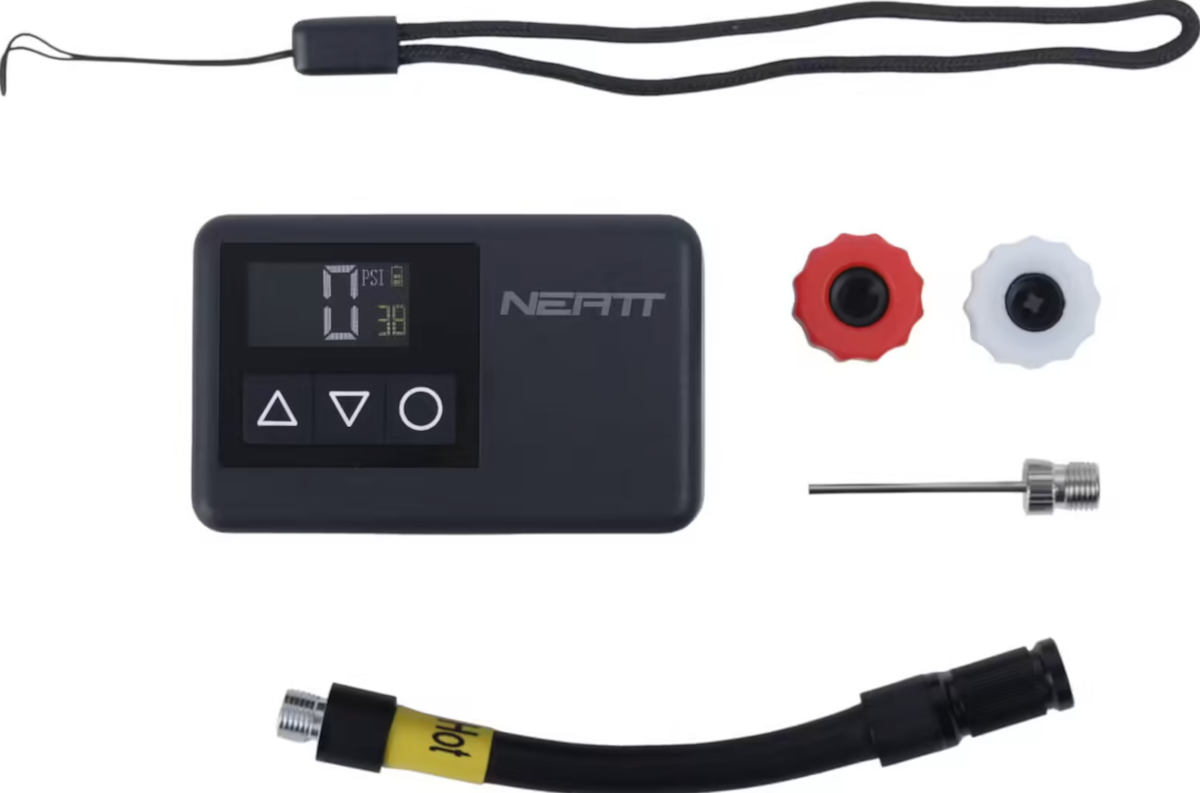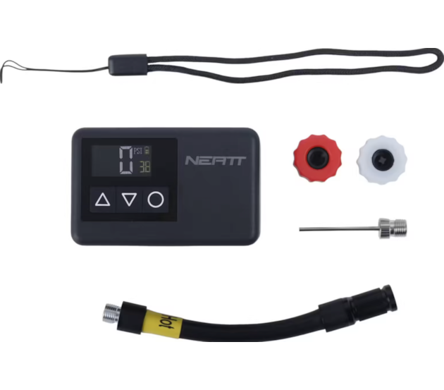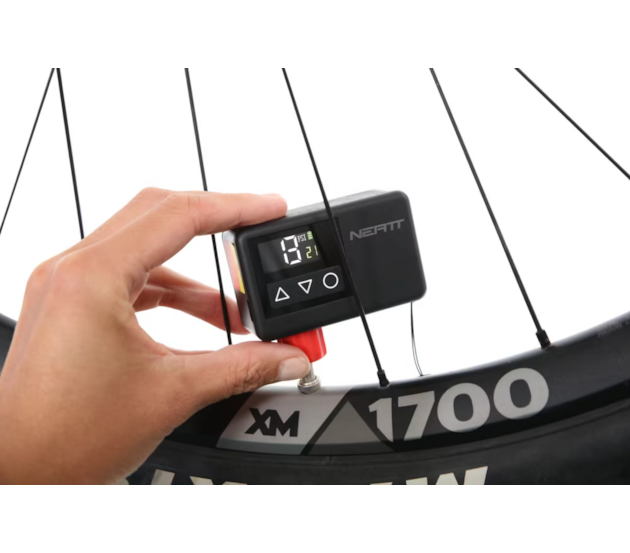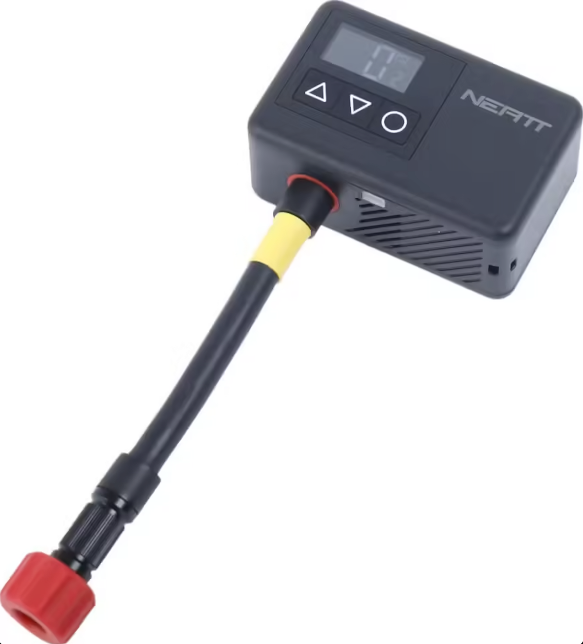 O mini compressor elétrico Neatt foi concebido para permitir voltar a encher os pneus em caso de furo ou antes de um passeio.