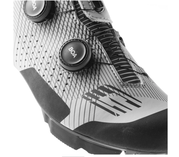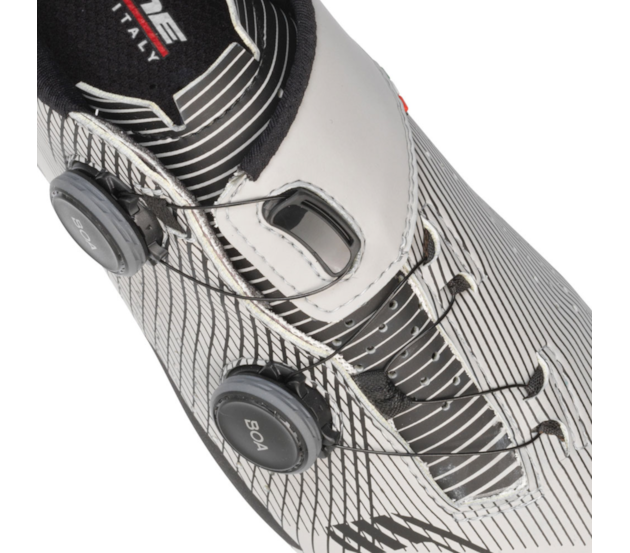 O sistema de fecho patenteado "BOA L6®" consiste em fechos de torção com cabos em aço inoxidável que permitem um ajuste fino incomparável. A combinação destes elementos permite ao ciclista uma fixação perfeita do pé, sem pontos de pressão. A ausência de fechos de velcro permite a máxima circulação de ar possível na parte frontal do pé.